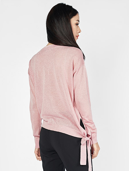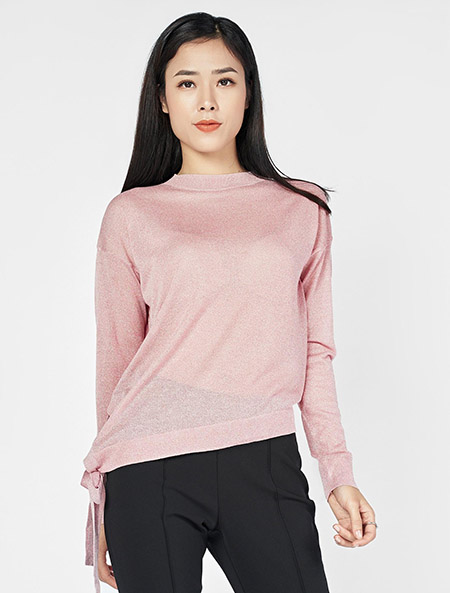- Áo len nữ cổ tròn, dài tay, gấu rủ chéo buộc nơ